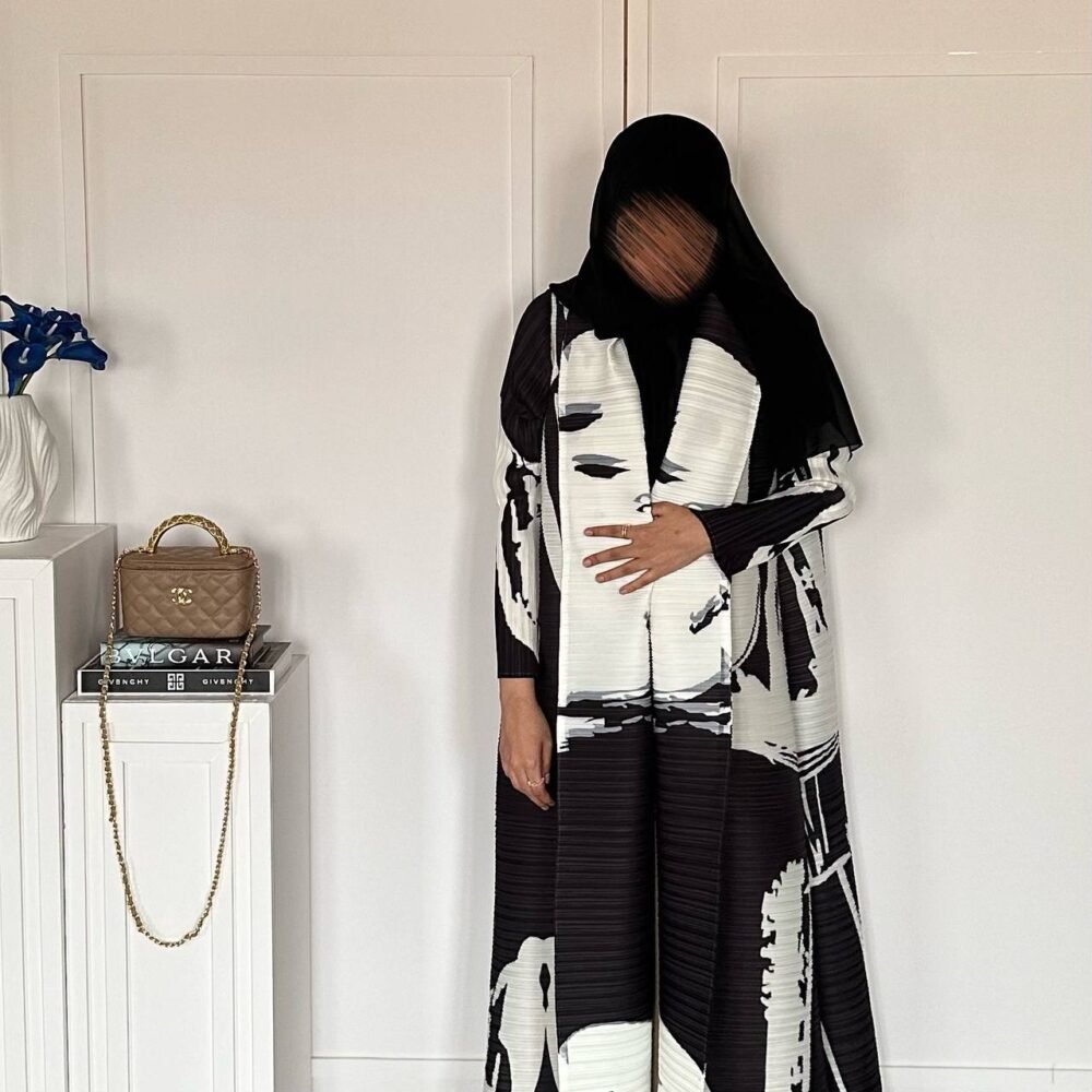 عباية مصممة من قماش البوليستر بكسرات أنيقة وتصميم مفتوح.