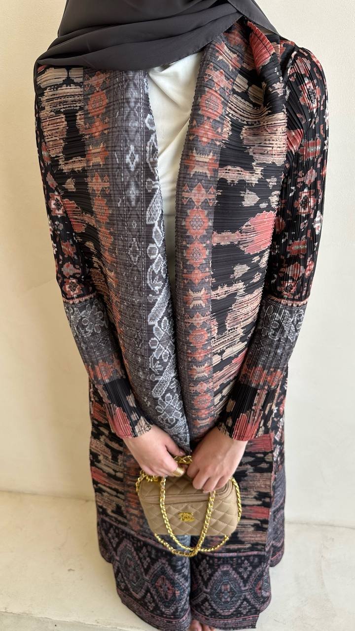 عباية بتصميم بدون أزرار مصنوعة من قماش بوليستر، تمنح مظهرًا أنيقًا وبسيطًا.