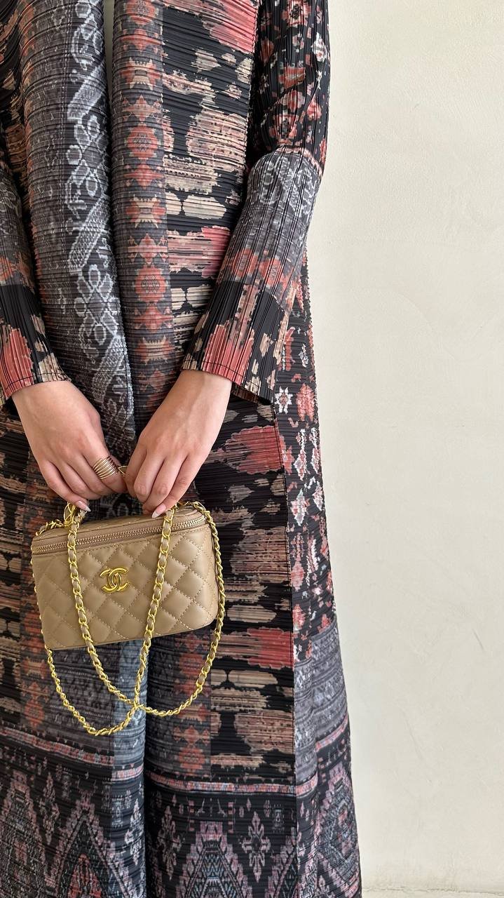 قد يتمدد القماش عند تعليق العباية؛ يُفضّل طيّها بدل التعليق.