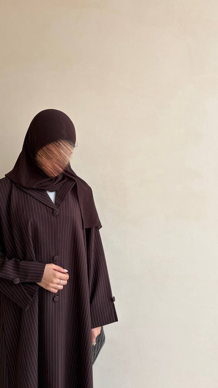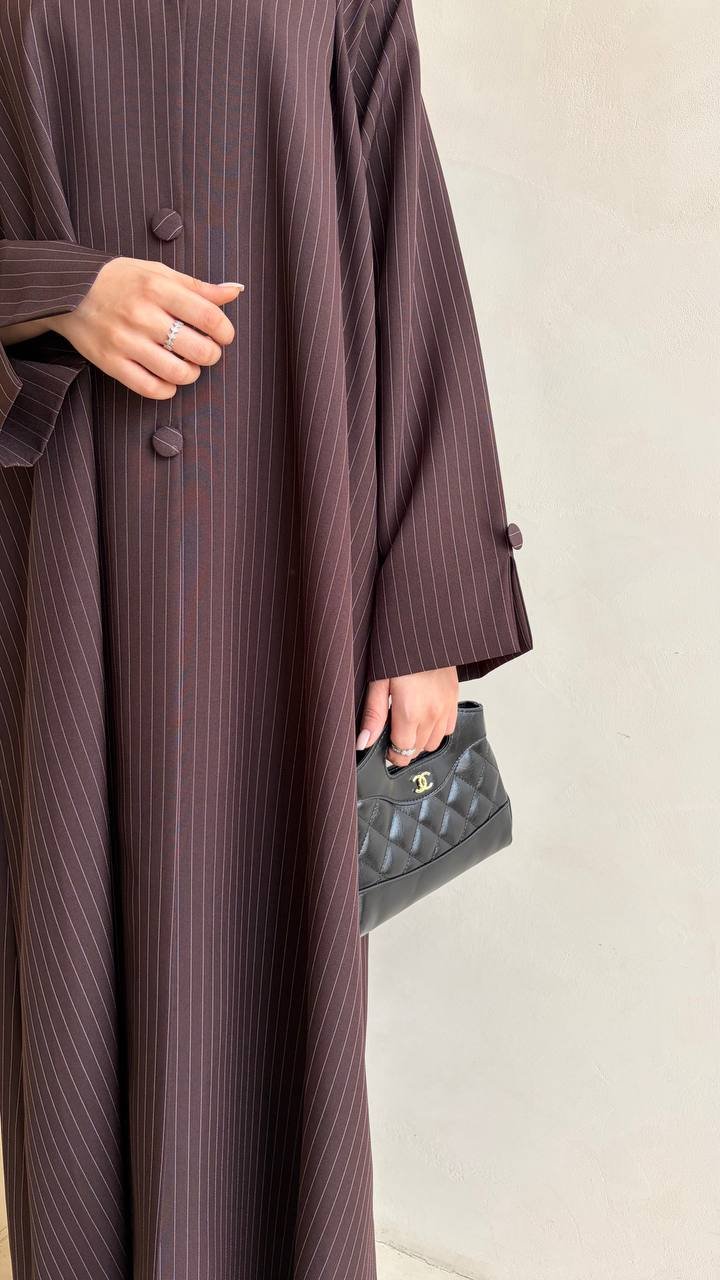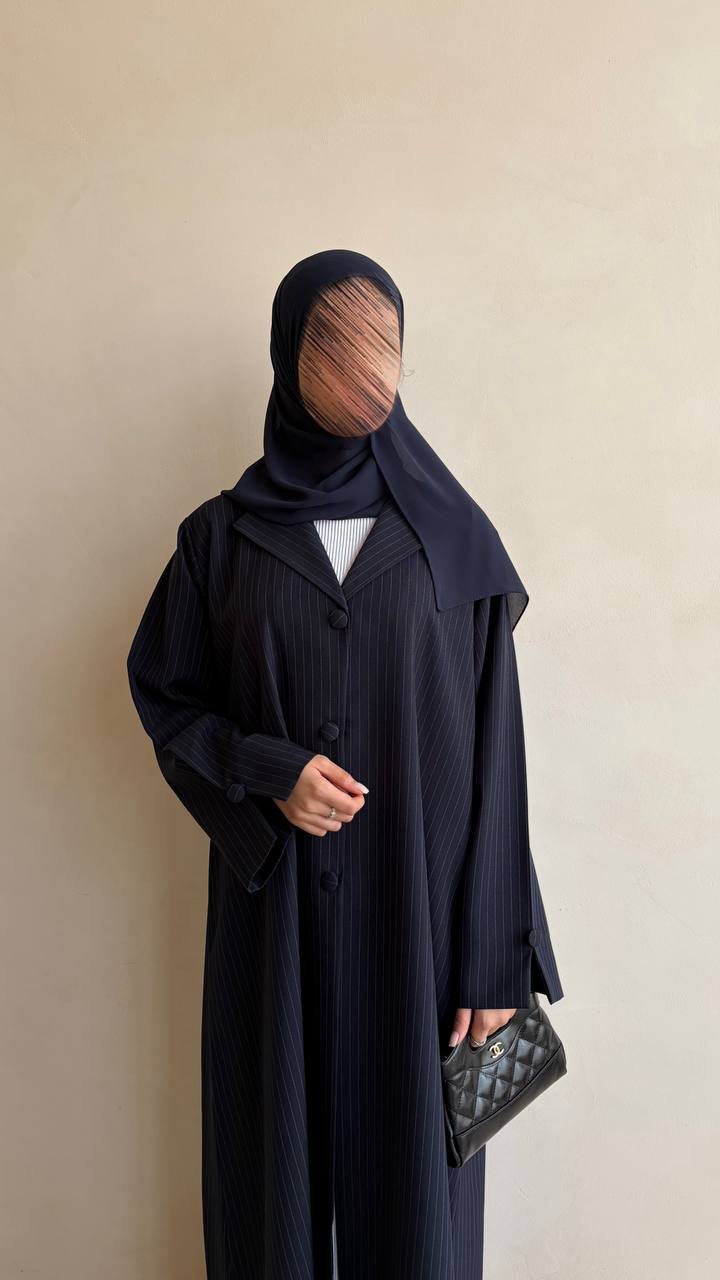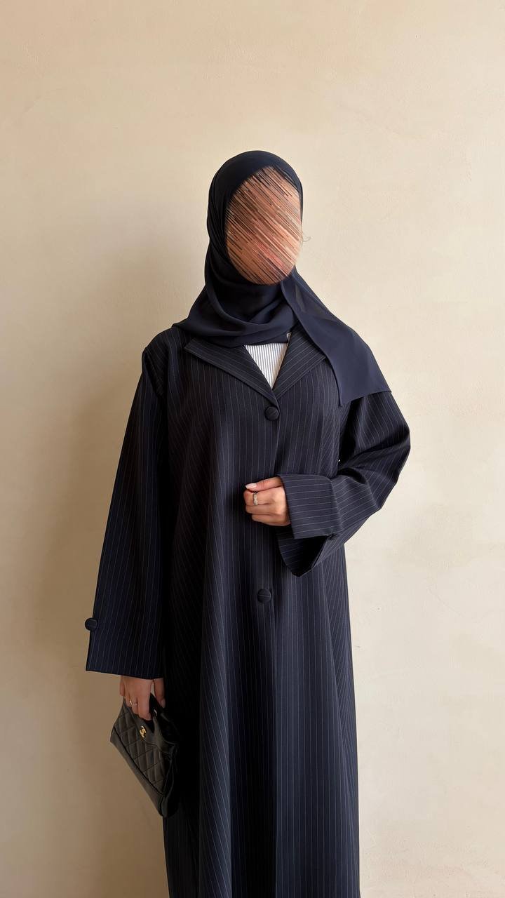 عباية بتصميم بليزر أنيق، مزينة بأزرار راقية تضيف لمسة عصرية وفخمة لإطلالة متجددة ومميزة.