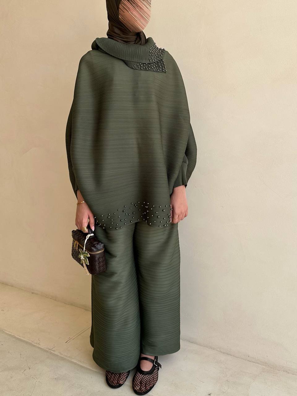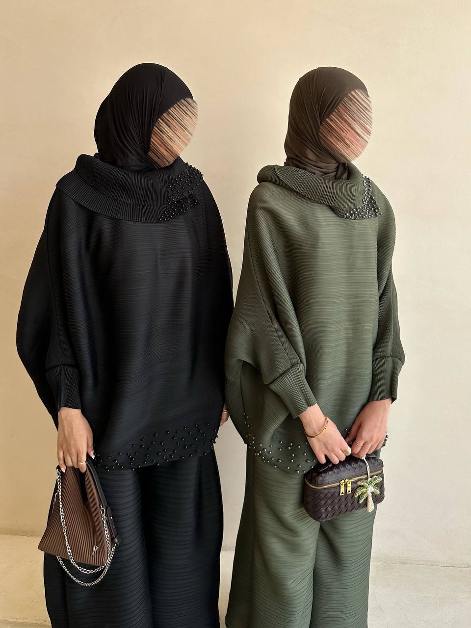 قد يتمدد القماش عند تعليق العباية؛ يُفضّل طيّها بدل التعليق.
