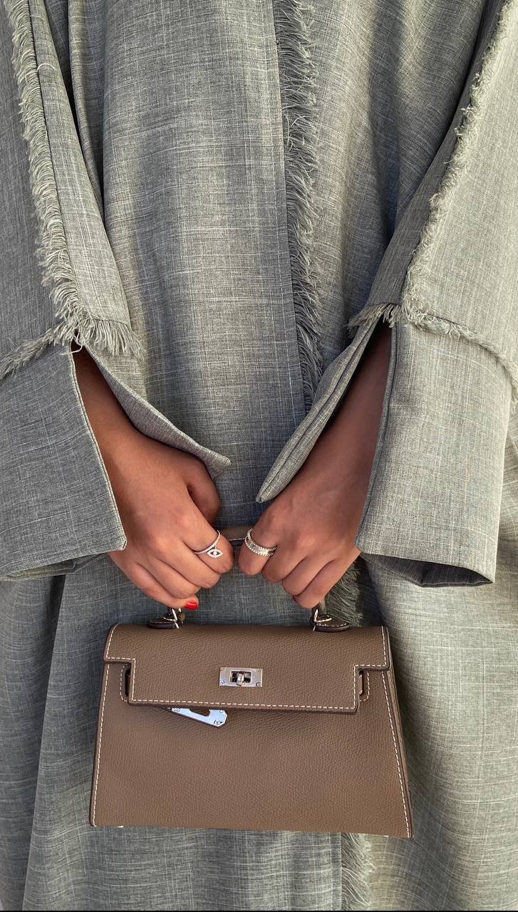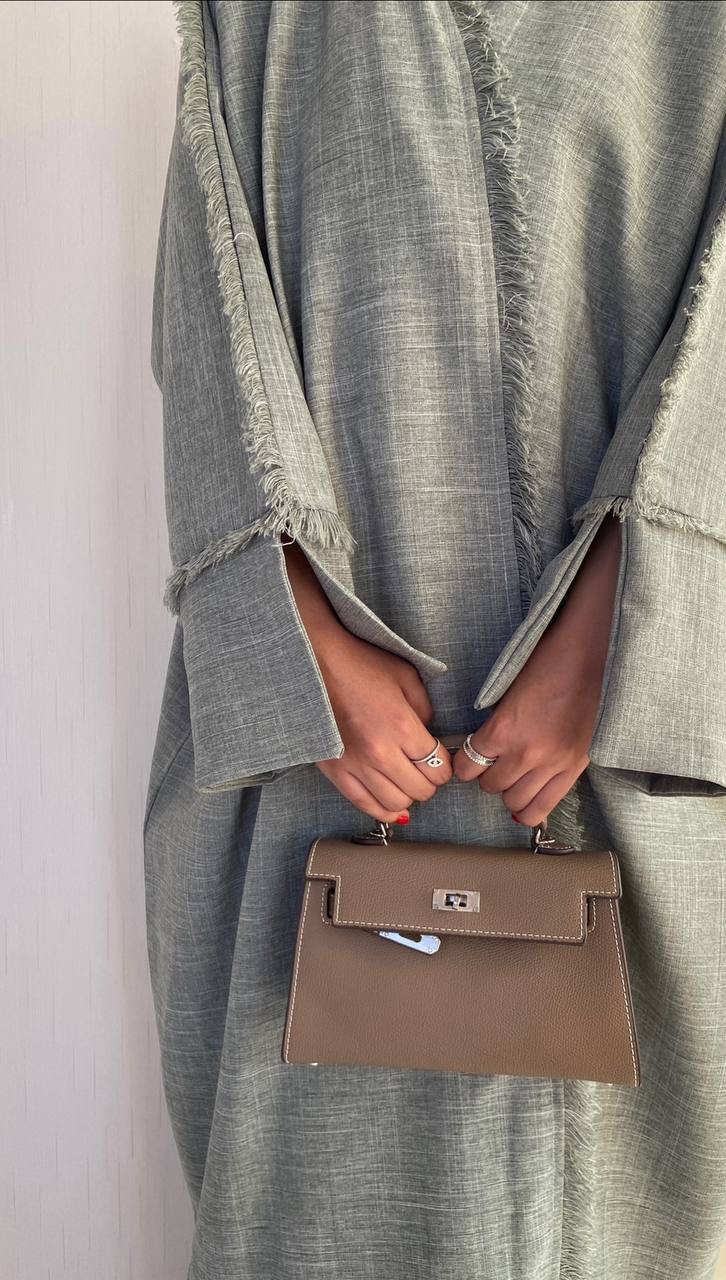 A high-end abaya with the luxurious Bahraini Bisht cut, made from elegant Taiwanese Linen fabric that grants it a distinctive flow and beauty.