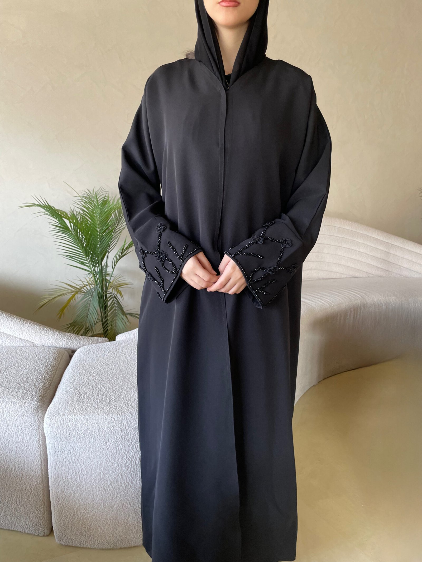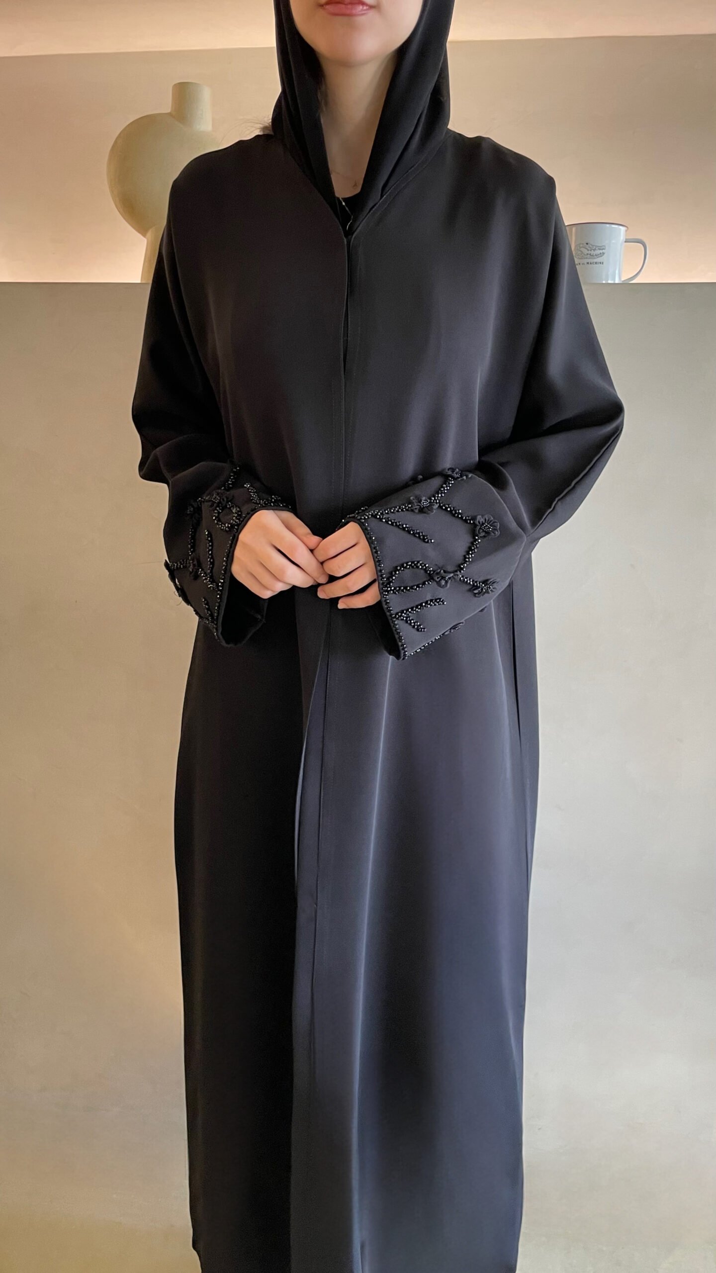 عباية بتصميم مع ازرار وشك على الاكمام