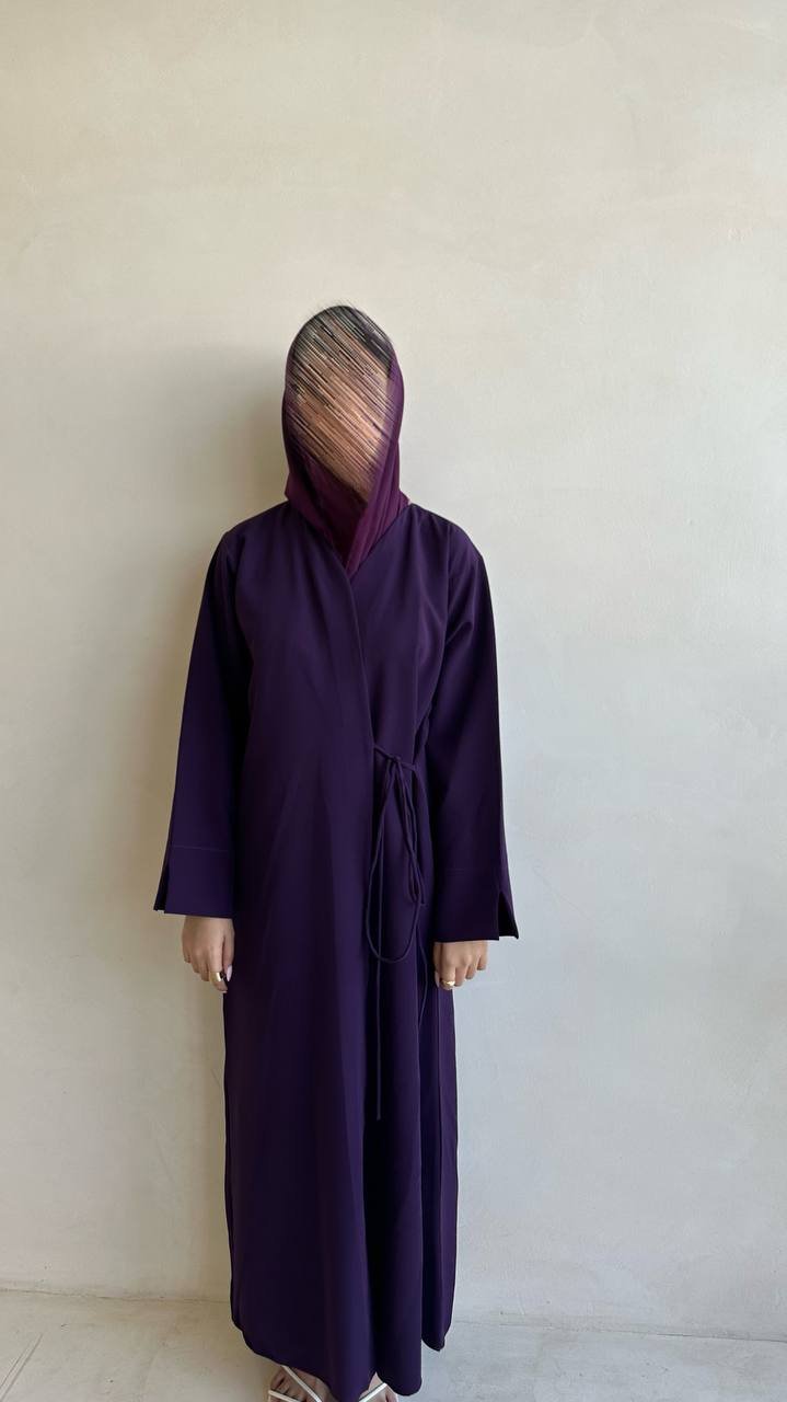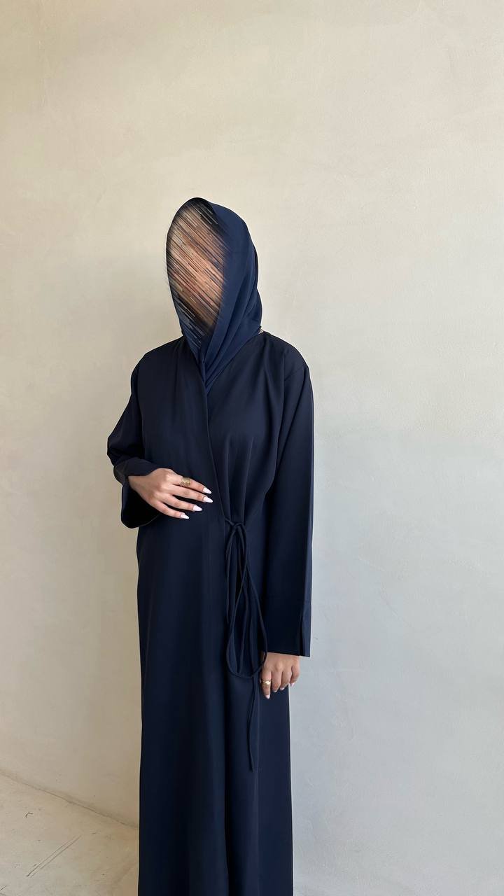 A luxurious Barbie-fabric abaya featuring a refined side tie with a soft, elegant design.