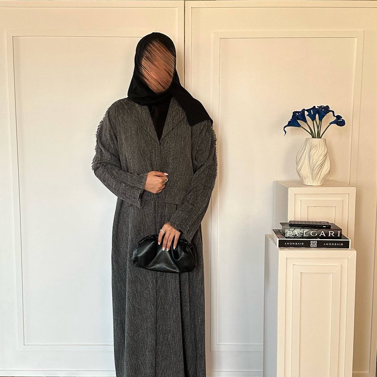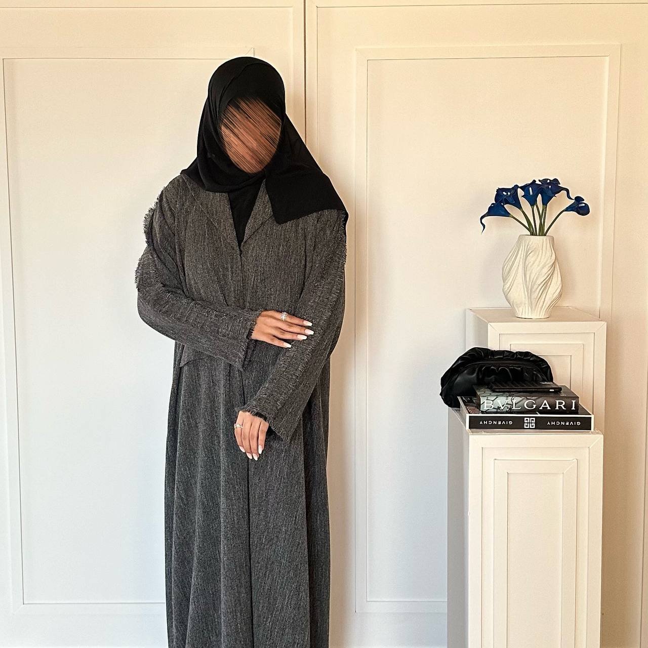 عباية بتصميم بليزر قماش شتوي ثقيل