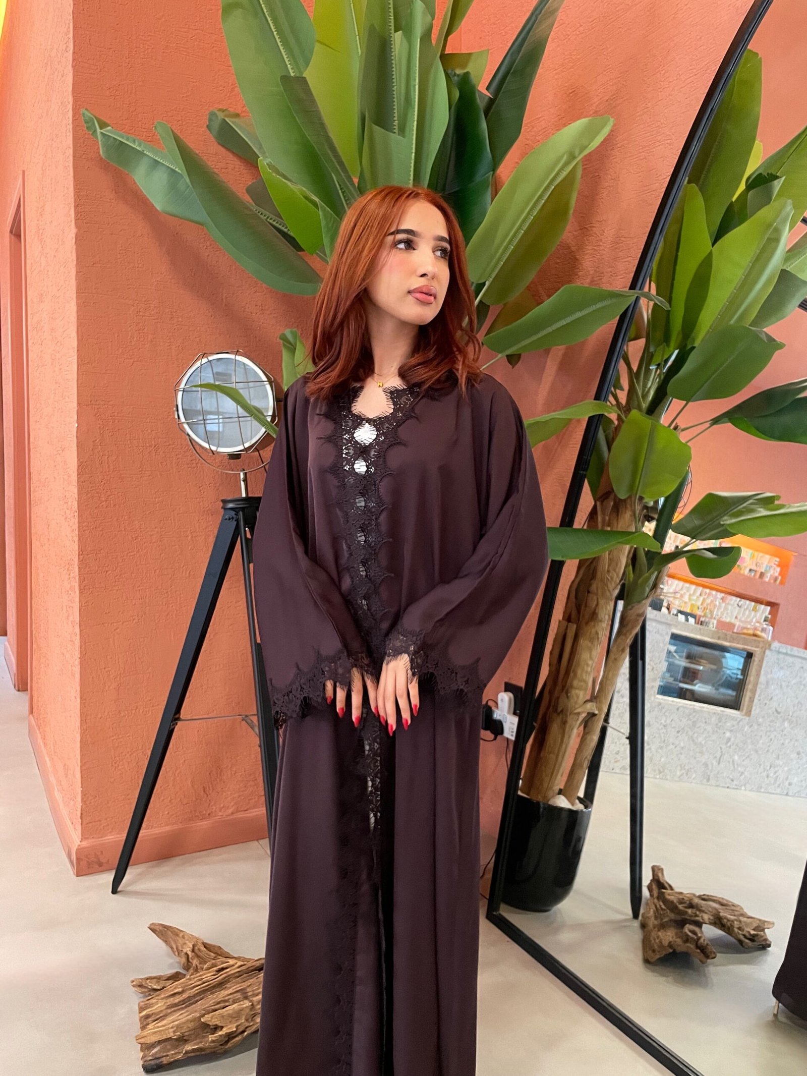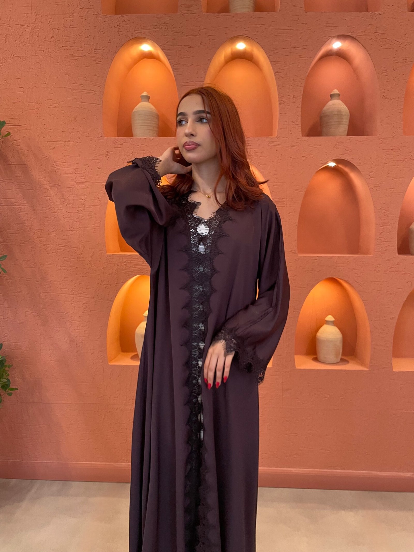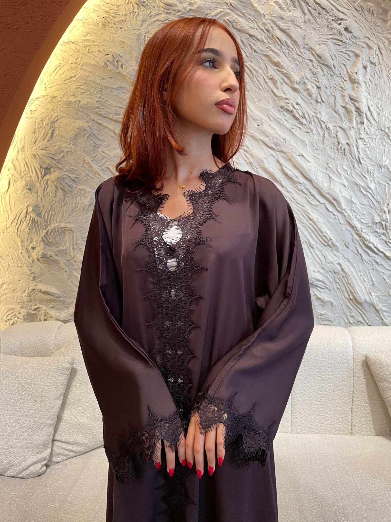 عباية بقماش ندى مع دانتيل من النصف و الاكمام