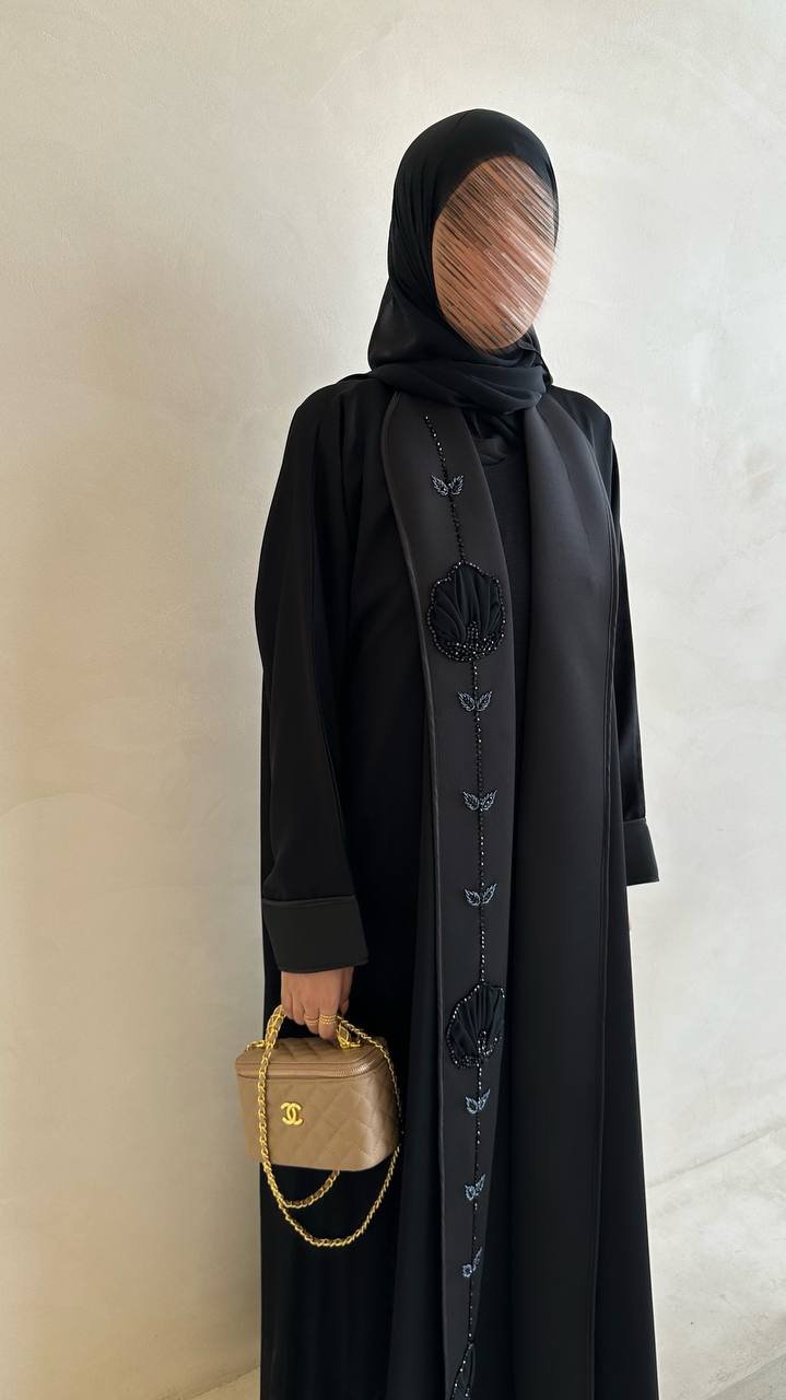 An abaya crafted from Korean fabric, featuring a comfortable design, finished with buttons for a refined and practical look.