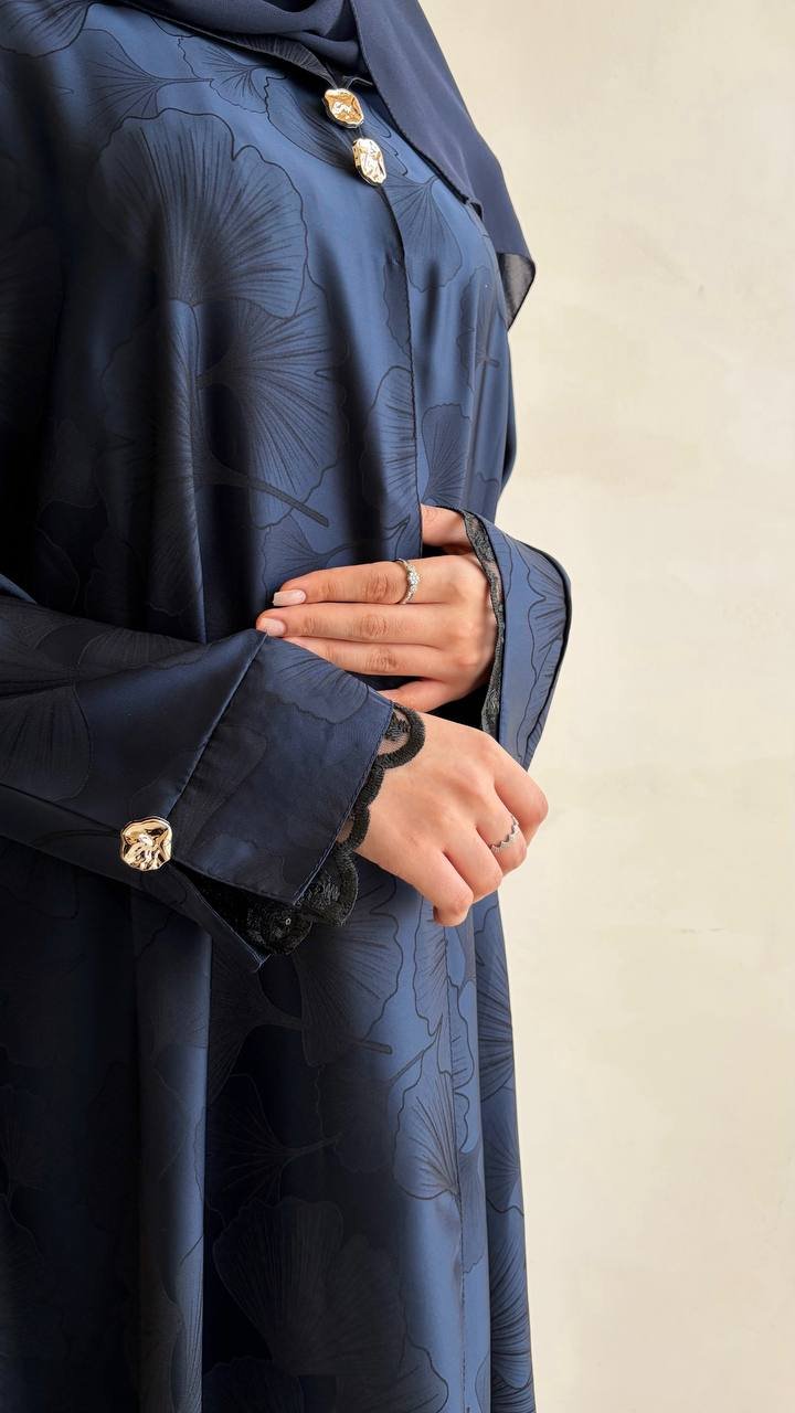 An elegant blazer-style abaya adorned with refined button details, offering a modern and sophisticated look.
